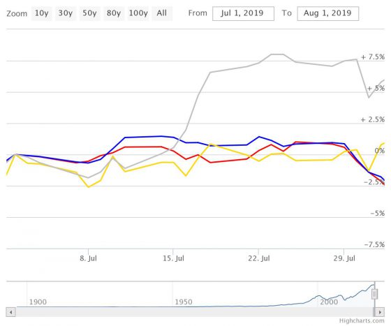 When you look at demand for gold and silver, it’s very healthy today, compared to the volatility of the stock market. Over the last 30 days, their reputation for investment stability and resiliency in a temperamental environment flanked by trade wars, interest rate cuts, and increasing inflation has demonstrated their burgeoning value in turbulent times like these.